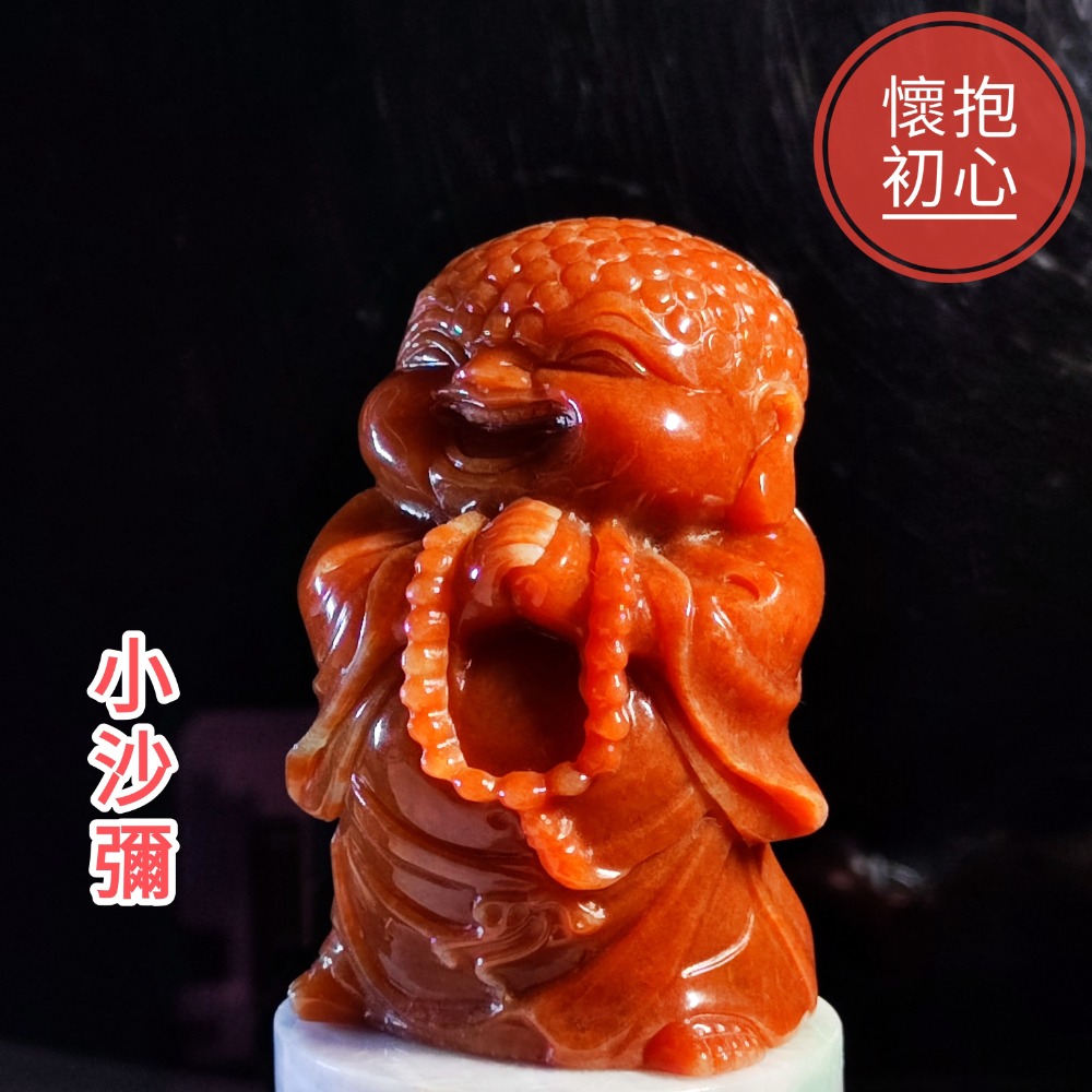 🔆息惡行慈🔆天然緬甸玉 A貨翡翠~紅翡 立體精雕 小沙彌 擺件 附證書【92jade 就愛翡翠】現貨特惠 翡翠沙彌