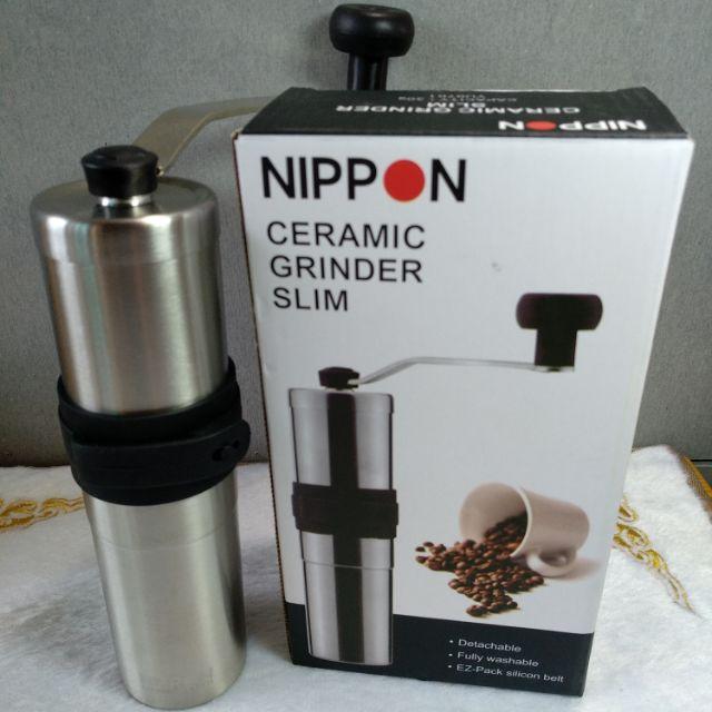 陶瓷刀盤 易清洗 咖啡豆研磨較均勻 風味更佳 NIPPON 隨行磨豆機  30G 黑色  陶瓷刀盤 輕巧好帶 YU0701       磨刀材質:陶瓷 容量:咖啡粉 30g 重量:256.5g  材質 : 陶瓷刀盤、瓶身(18-8不鏽鋼)、手柄(不鏽鋼+pp聚炳希)、扣環腰帶(食品級矽膠) *刀片與PORLEX同廠製做 錐型刀盤 可直接水洗,亦可降低研磨時所產生的熱能,保有咖啡原來香氣。 陶瓷刀組提高刀片的銳利度,易磨、咖啡粉粗細較為一致。 磨豆機瓶身細腰設計直徑 4.5cm  容易一手掌握  磨豆機瓶身高度19.5公分 手搖臂長度15cm  堅固耐用、攜帶方便、快拆式設計,安裝收納快~ 使用方式: 將咖啡豆放入豆槽,並調整研磨粗細刻度,蓋上上蓋順時鐘旋轉把手即可。 清洗方式:請將所有零件拆解並以中性清潔劑清洗,待零件乾燥後再進行組裝,以免潮濕影響產品運作。   😀現貨供應