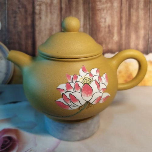 🍵黃金段泥 彩繪蓮花 潘壺🍵 泥彩繪蓮花 好運連連 經典器型 泡茶利器 梅花7孔出水 180cc 《紫玉金砂 溫潤如玉》 💖遇見善緣 玉結善緣💖 翡翠 玉石 彩寶 紫砂 網路專賣店 #紫砂壺 #段泥 #徐方懷老師