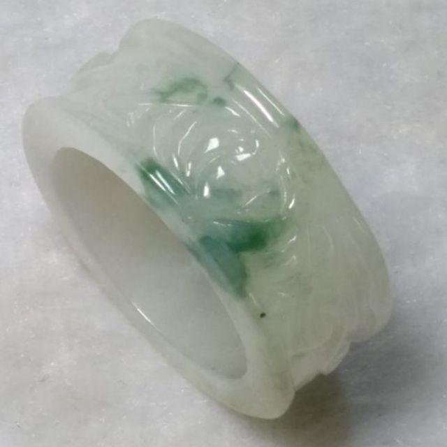 🦇福星高照🦇 天然緬甸玉A貨翡翠-糯冰飄綠花 精雕 蝙蝠 如意紋 扳指【92jade 遇見善緣】現貨特惠 翡翠扳指戒指