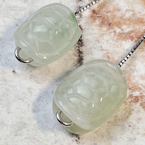 🐢富甲一方🐢天然緬甸玉 A貨 翡翠-龜殼 造型 耳線/耳墬/耳飾 銀飾 玉龜殼 現貨特惠【92jade】龜殼耳飾 玉耳線