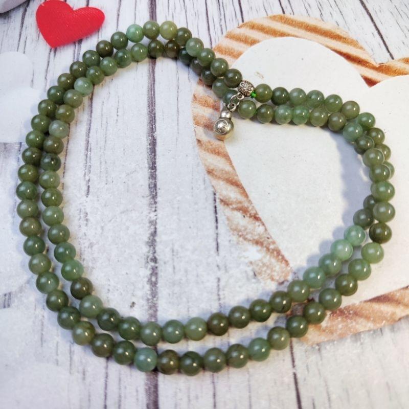 🔮108🔮 #天然緬甸玉#A貨翡翠 7.2mm冰油青珠 毛衣鏈 多幅多祿 葫蘆造型銀掛飾 #翡翠 #翡翠項鏈 #毛衣鏈項鍊
