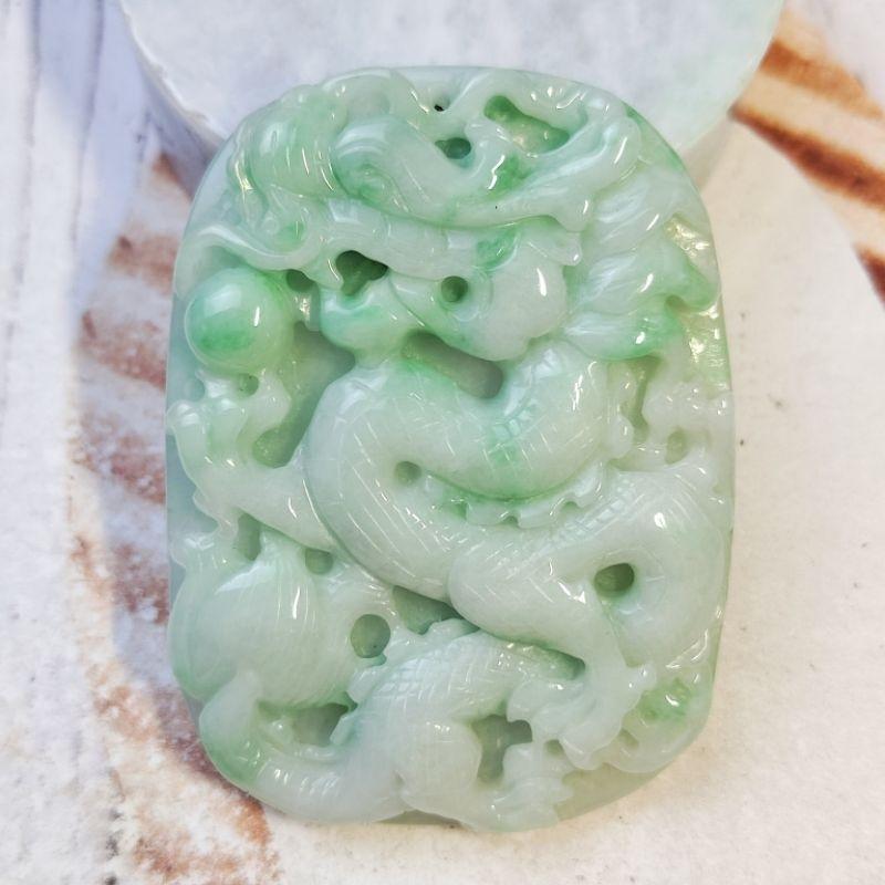 🐲龍行天下🐉天然緬甸玉 A貨 翡翠 飄綠花 精雕 龍 龍牌 現貨特價 翡翠龍牌 龍牌吊墬 龍玉佩 龍項鍊 龍牌墬子
