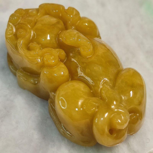 💱招財納福💱 天然緬甸玉A貨翡翠 黃翡 精雕 貔貅 附證書