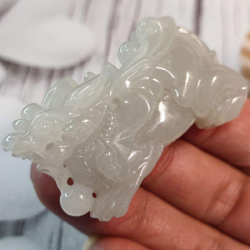 🛩️飛黃騰達🛩️️ 天然緬甸玉A貨翡翠 白冰 立體精雕 飛天貔貅 【92jade 遇見善緣】現貨特惠