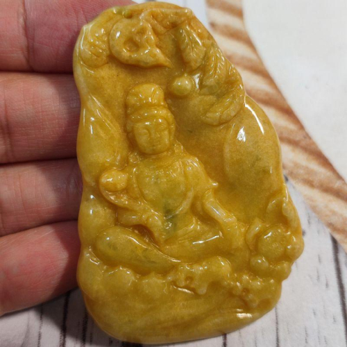 🙏鳳凰觀音🙏天然緬甸玉 A貨翡翠-黃翡 精雕 鳳凰 觀音【92jade 遇見善緣】現貨特價 翡翠觀音 觀音玉佩玉墬