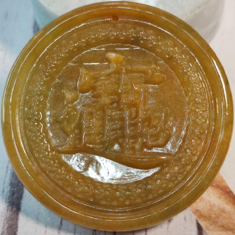💰招財進寶💰 天然緬甸玉A貨翡翠 栗黃 鐲心料 精雕 招財進寶 附證書 現貨特價【92jade 遇見善緣】
