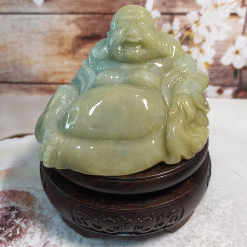 😁有福相伴😁 天然緬甸玉 A貨翡翠 豆綠 精雕 佛公/笑彌勒 擺件 #翡翠擺件 #佛公 #笑彌勒 「大肚能容,容天下難容之事;開口便笑,笑世間可笑之人。」