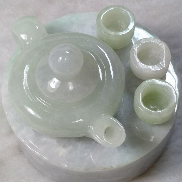 🎐遇見幸福🎐天然緬甸玉A貨翡翠-帶底色 玉壺組 擺件 現貨實拍優惠特價【92jade 遇見善緣】