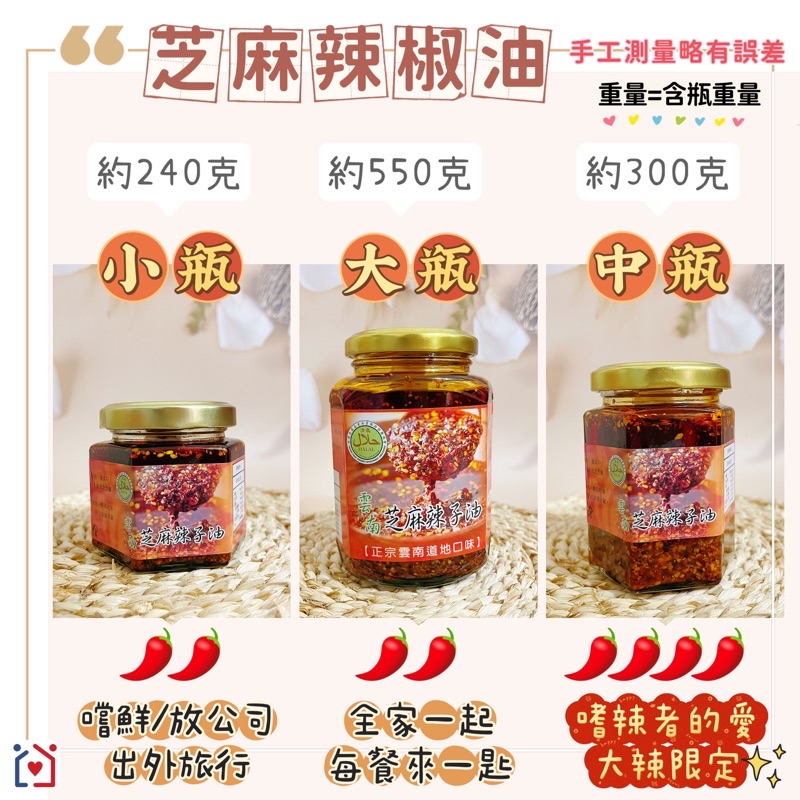 🌶️芝麻辣椒油 :小瓶240g+-5% / 大瓶550g +-5%