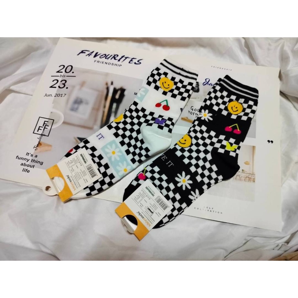 正韓黑+白格襪2雙