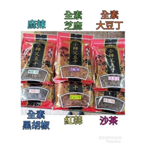 小師傅豆干 口味: 紅蒜 / 沙茶 / 麻辣 全素口味: 芝麻 / 黑胡椒 / 大豆丁 紅蒜 / 沙茶 / 麻辣 / 芝麻 / 黑胡椒 重量:320公克/包 大豆丁 重量:300公克/包 <下單前須知>: *10包以內可以超商取貨 *11以上須用宅配,運費100元