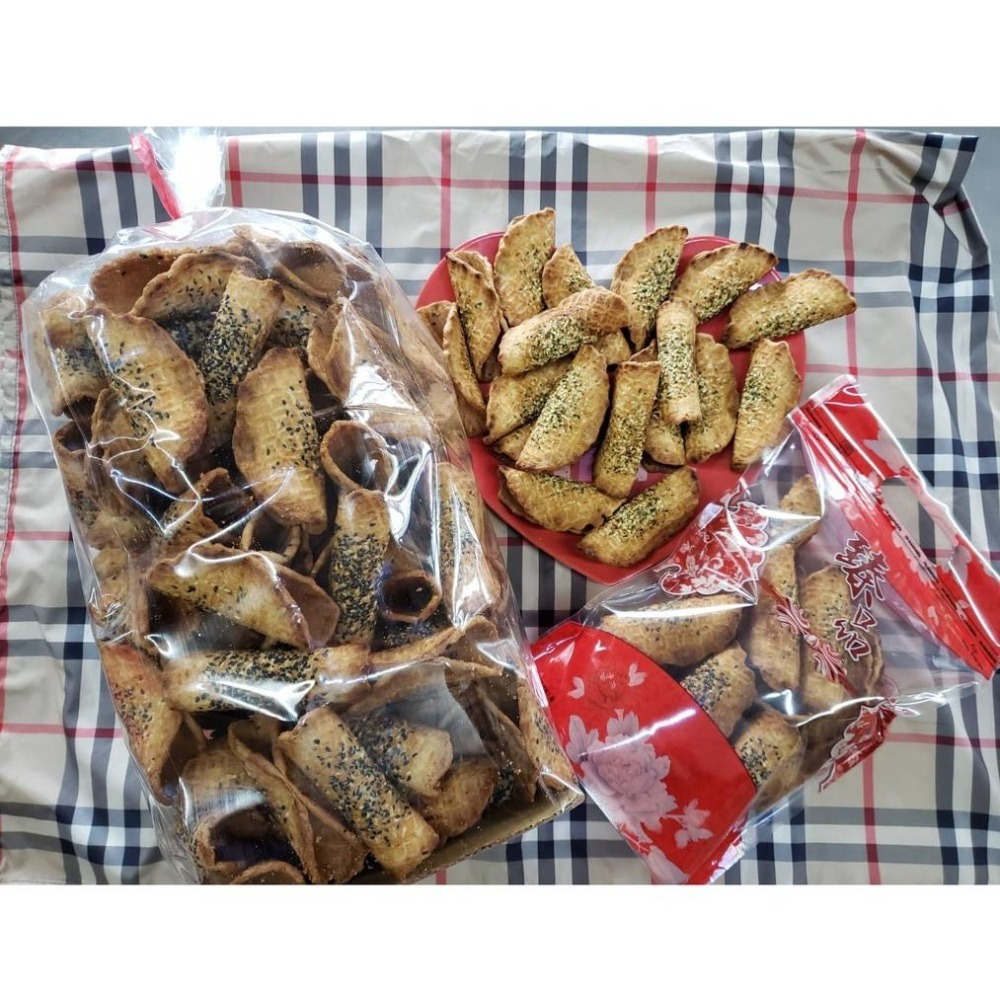 古早味煎餅(元寶酥) *蛋素 *非油炸 口味:海苔/黑芝麻 小孩大人老人都咬得動,不會硬梆梆 又酥又香,送人自己吃好看又大方