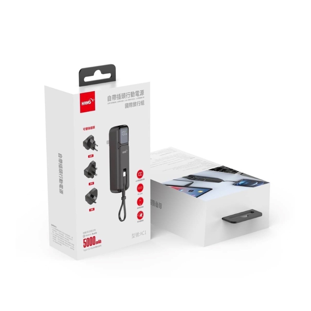 HANG AC1 自帶插頭 5000mAh 雙向快充 行動電源 國際旅行組