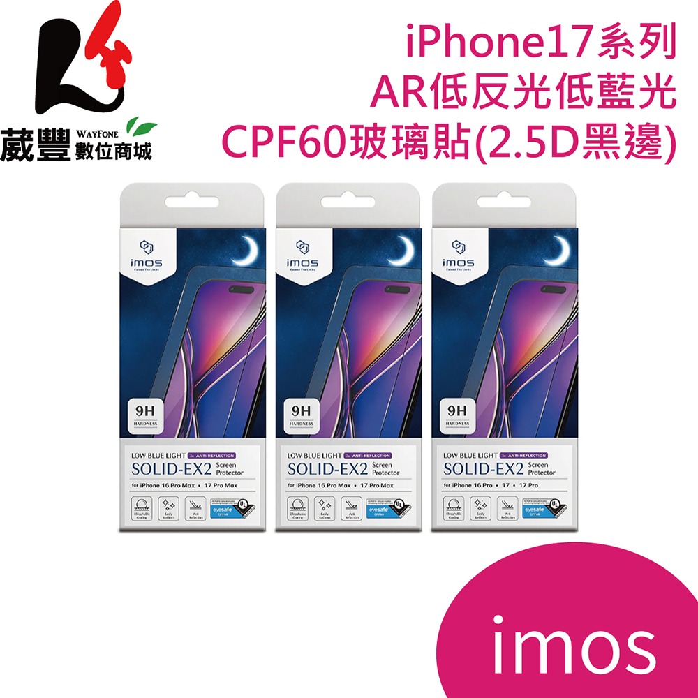 imos iPhone系列 AR低反光 CPF60 玻璃保護貼 2.5D高透黑邊【葳豐數位商城】