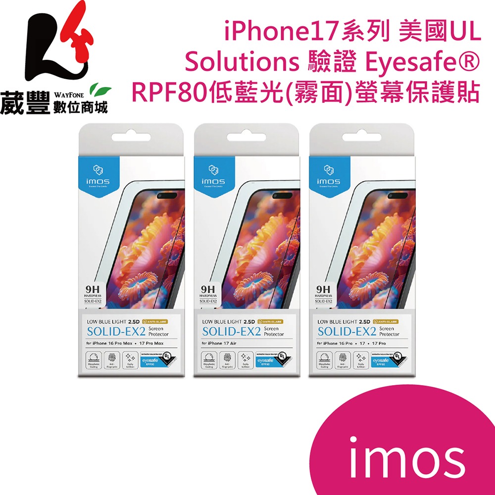 imos iPhone系列 霧面 RPF80 低藍光 螢幕保護貼 2.5D 霧面 美國UL認證