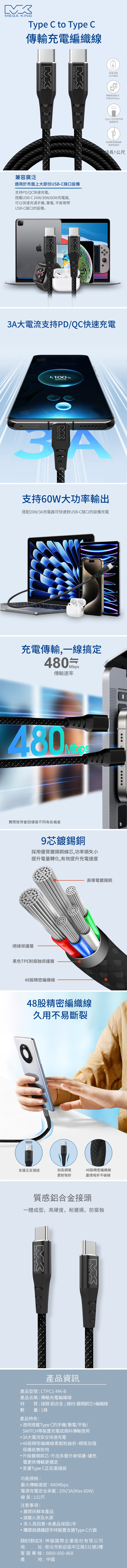 產品名稱:MEGA KING Type C to Type C 傳輸充電編織線