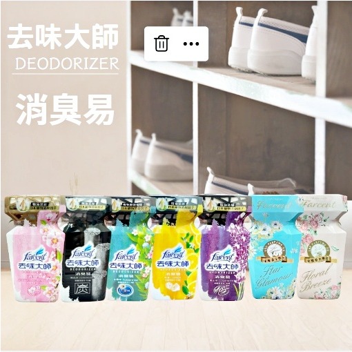 ====================================== 因包材漲幅過大,賣場出貨訂單需滿99元,請見諒! ★超商取貨限購12瓶 ====================================== 商品簡介 ★添加日本植物消臭因子 ★分解臭源才能清新空氣 讓您用天然的方法,有效率地去除異味 持續消臭6-10週(依場所空間 溫溼度而度) 利用包覆中和+吞噬分解效應,長效持續消臭 多款香味可選 【粉戀櫻花】消臭易350ml 【備長炭】消臭易350ml 【薰衣草】消臭易350ml 【檸檬】消臭易350ml 【去霉味】消臭易350ml 【雪松麝香】香水消臭易350ml 【雪松麝香】香水消臭易350ml ■ 原產地:中國 ■ 保存期限:3年 ■ 製造日期:標示於包裝上(西元年/月/日) ■ 產品用途:家庭用芳香劑 ■ 保存方法:請置放於陰涼處