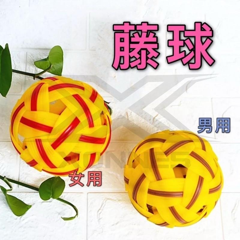 藤球為圓球體,原以藤製成,現以人造纖維和橡膠製成。直徑為12-13公分,表面有12個孔、20處交叉。圓周男子界於41~43公分,女子界於42~44公分。重量界於170~180公克,於150~160公克。