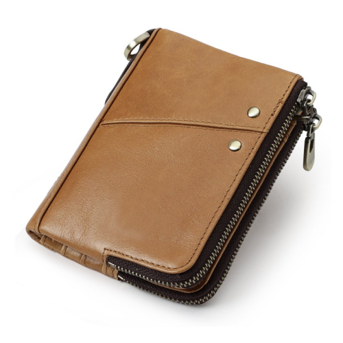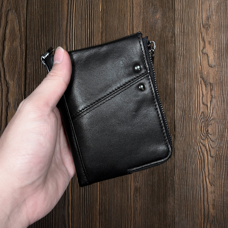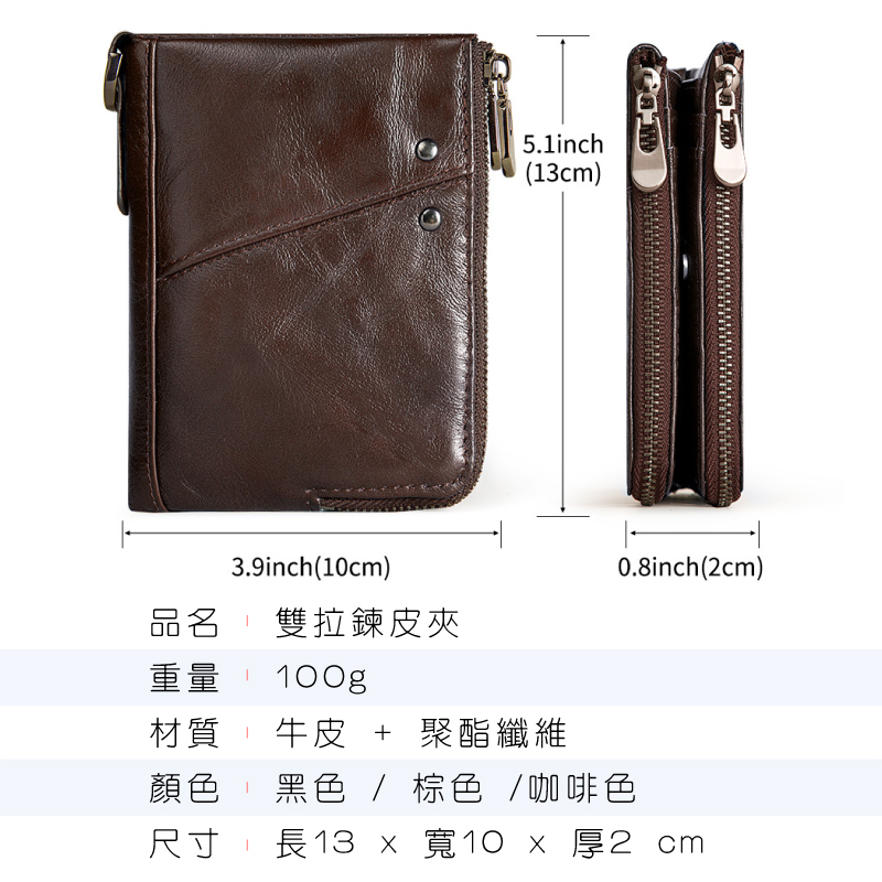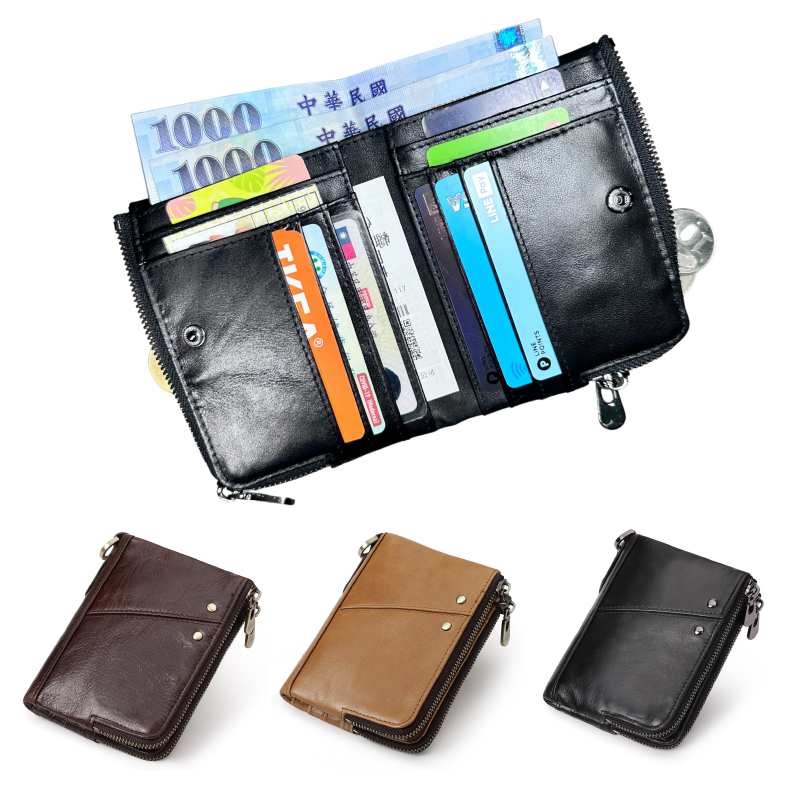 雙拉鍊皮夾 真皮 牛皮錢包 零錢包 可放12張卡 拉鍊錢包 手拿包 短夾 男包 魔法巷