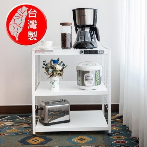 (宅配免運)S010《愛樂美》附插座3層電器收納架 置物架 層架 A-101-4 (新四代插座)