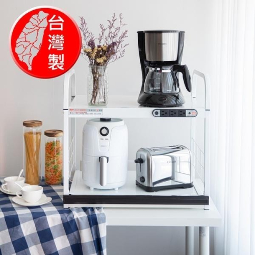 (宅配免運)S011《愛樂美》附插座1拉板2層桌上型電器收納架 置物架 層架 A-112-4 (新型第四代插座)
