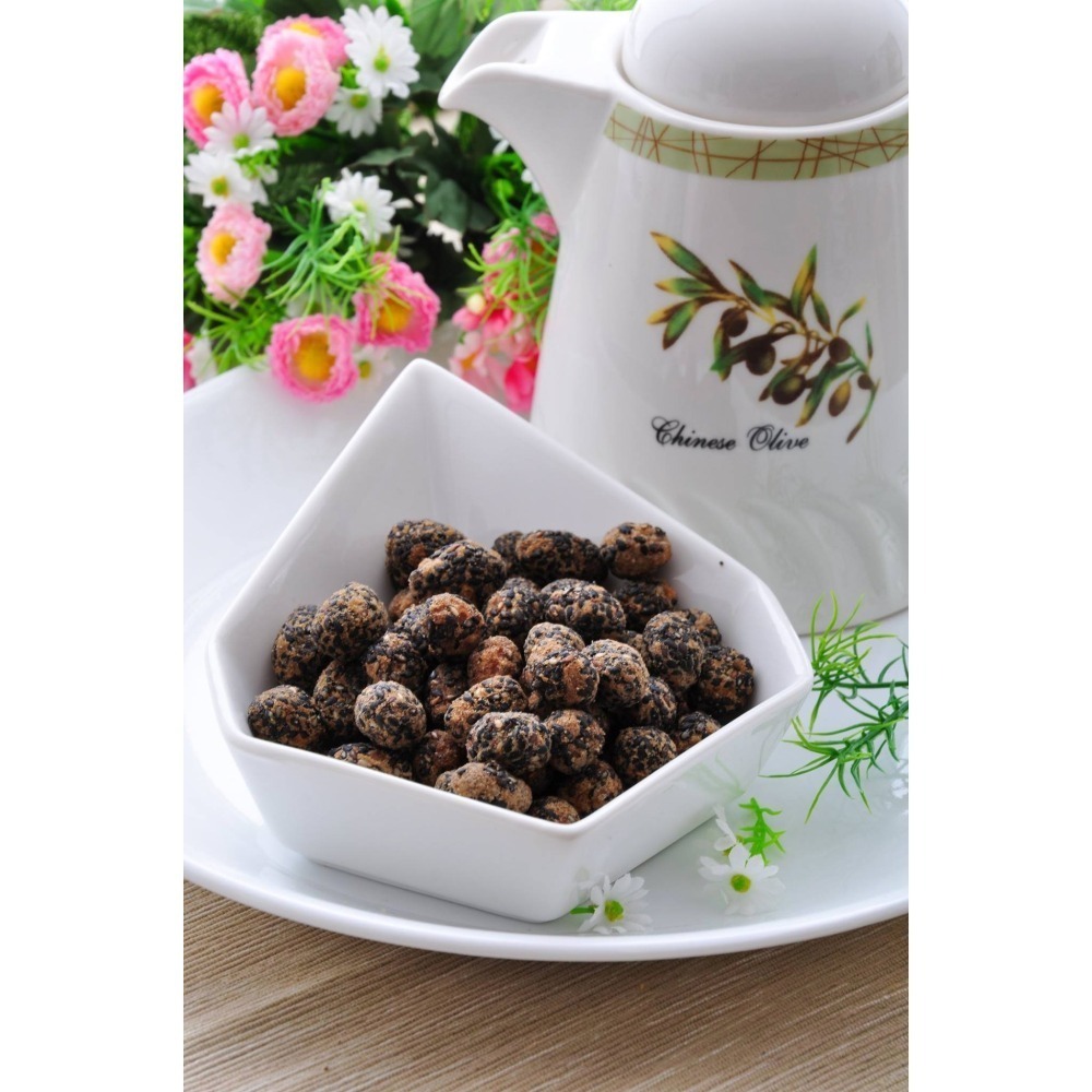 原料:花生、麵粉、糖、植物油、竹炭粉、鹽
