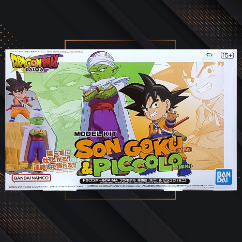 「七龍珠DAIMA 孫悟空(迷你) & 比克(迷你)組裝模型」,為可以在桌面上展示 七龍珠DAIMA 世界觀的不可動模型,迷你造型悟空與達爾組裝後尺寸約高 9 公分,再現充滿個性的姿勢,悟空經典的橘色道服、比克的披風透過零件組裝就有很高的完成度;採用預先印刷的臉部零件還原可愛的神情!除此之外,附有龍珠世界中特色的岩石底座,實現劇中的場景;有三段狀態的岩石可以組合成不同的高度,表現高低差的層次,並附有可固定角色腳掌的零件,讓站姿可以更加穩固。可以與另售的「孫悟空(迷你) & 達爾(迷你)」連結展示!