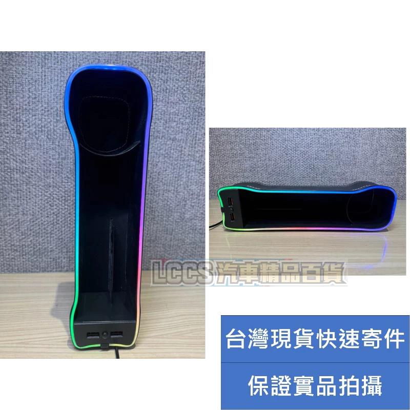 現貨 新款LED幻彩氣氛燈+雙USB街頭座椅隙縫收納盒 氣氛燈 收納盒 通用型車載收納盒