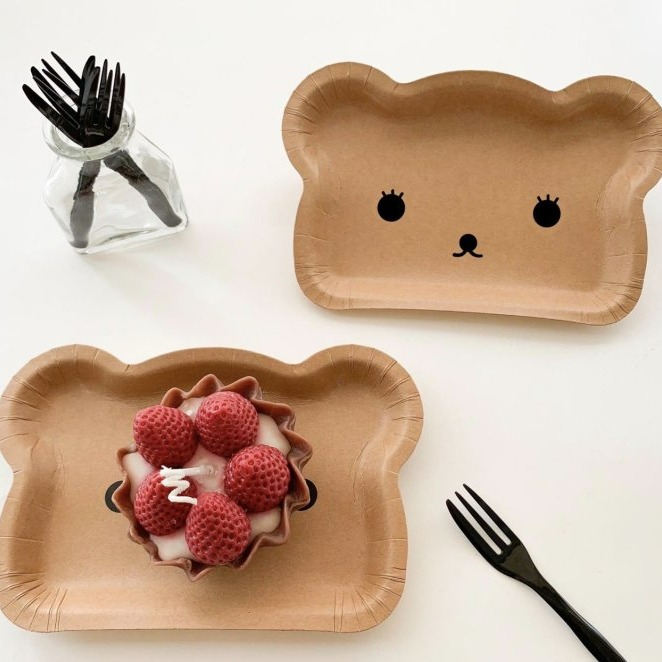 1包5個叉子 5個盤子,方便您慶生、送禮、做生意使用 小熊蛋糕盤叉組內有5個長寬為19cm*12.5cm的牛皮色小熊造型紙盤以及5支10cm黑色造型蛋糕叉,適用於咖啡廳、主題派對,利於增加消費者對品牌或派對活動的印象。 內容物: 黑色法式蛋糕叉*5+牛皮色小熊盤*5 裝成一包 材質: PS、紙 紙盤尺寸: 約19cm*12.5cm 叉子尺寸 : 總長度約10cm 叉子寬度約1.7cm 蛋糕店裡的生日蛋糕好像少了一點可愛的裝飾嗎?造型可愛度爆表的牛皮色小熊造型蛋糕盤叉組是你的新選擇!小熊寬寬的臉上來一塊蛋糕剛剛好,快找咖啡色小熊陪你的寶貝們一起過生日吧!