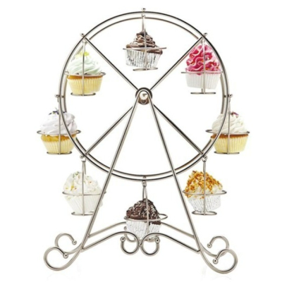 用 途:幸福摩天輪象徵美好的愛情,婚禮宴會的必備品;此款小蛋糕架專為聚會 生日party 而備的非常實用的小工具,還可以轉動哦,擺放於家中或是生意場所也非常有氣氛,裝扮現場非它不能少哦~ 幼稚園 學校小朋友過生日,把制作好的小杯子蛋糕 带到學校 放置在架子上,很神奇,孩子們一定很開心~~ 希望能带给小朋友一个快樂的生日和美好童年回憶~~ 我們專賣食品級的包裝容器 適合喜歡在家DIY或是自己手作甜品給大家分享的你 讓心愛的人吃得放心 您也能夠盡興的享受烘培的樂趣 數量:1入(含8個杯子小籃子) 規格:架子本體44*33公分 小籃子上口徑6.3 下口徑4.6 高8.7公分 材質:鋁