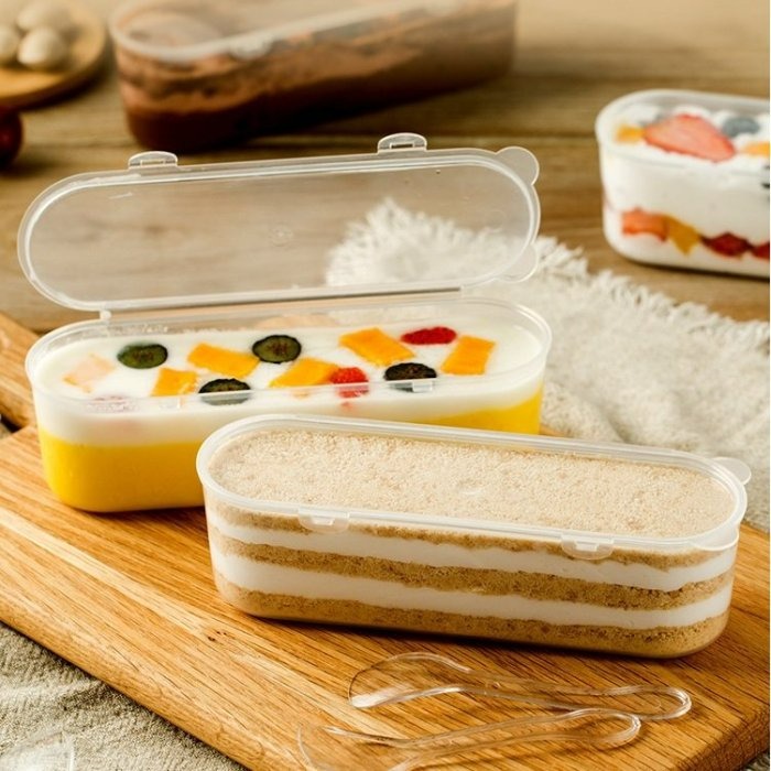 具有耐高温+100℃,耐低温-20℃ 可適合微波食品烹调和冰箱食品保鲜,冷藏使用 耐壓性强不易變形,方便食品包装配送 方便性规格,容量的標準化設計,為快餐配送以及餐飲外帶提供便捷的包裝 盒身與盒蓋相連,使用方便 我們專賣食品級的包裝容器 適合喜歡在家DIY或是自己手作甜品給大家分享的你 讓心愛的人吃得放心 您也能夠盡興的享受烘培的樂趣 材質:耐高溫PP塑料 規格:長16.5公分*寬5公分*高4.5公分 容量:251cc 適合用來裝千層蛋糕、冰淇淋、優格、慕斯等 注意:商品只包含盒子5個,不包含裡面食物,湯匙需另外購買!