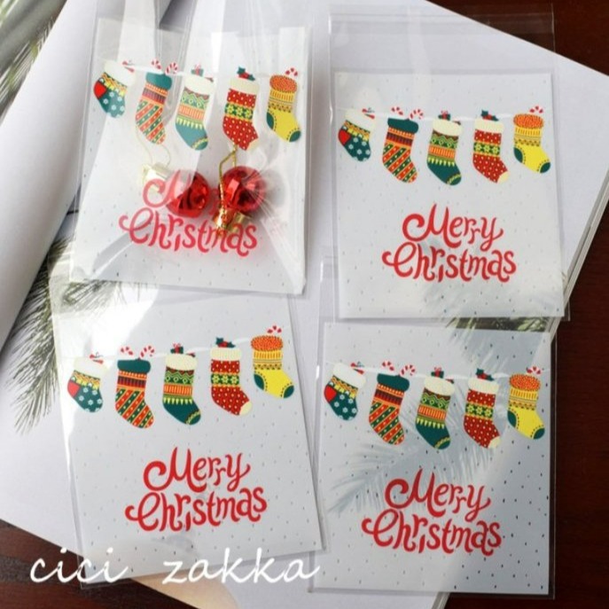 【嚴選SHOP】98入 聖誕襪 opp袋 聖誕禮物袋 自黏袋 透明袋 塑膠包裝袋 餅乾 糖果袋 耶誕交換禮物【X034】