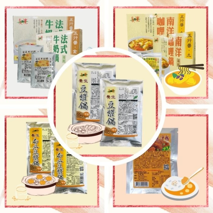 取出養生豆漿鍋湯底包拆包後外加600cc之水(3碗水)後放入鍋中外中以大火加熱煮沸時即可投入喜歡之食材(各式菇類、玉米及小白菜----等),搭配已燙熟自然緣素五行手工拉麵一起煮即成美味可口之養生豆漿湯麵,搭配各式火鍋食材(高麗菜、玉米、豆腐、各式菇類、豆皮------等)即成美味的養生豆漿鍋