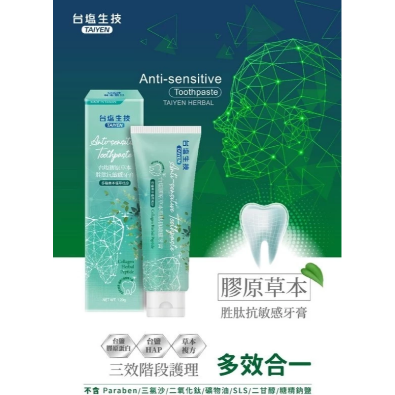 【台塩生技】膠原草本胜肽抗敏感牙膏120g