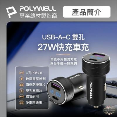🌟27W USB+Type-C 雙孔車用充電器 (帶電瓶電量顯示)🌟