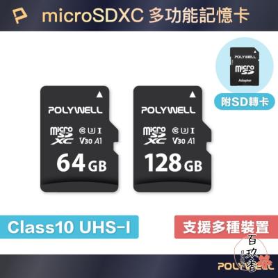 🌟Polywell microSD/TF卡 C10 UHS-I U3 A1 (附SD轉卡)🌟