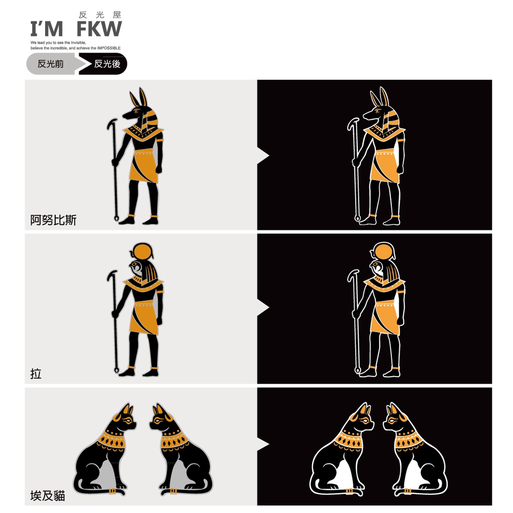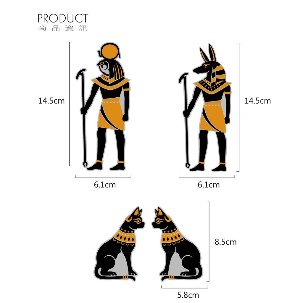 獨特埃及風格反光車貼,擁有阿努比斯、拉等兩大神祇及可愛埃及貓圖款,防水、耐曬、反光。