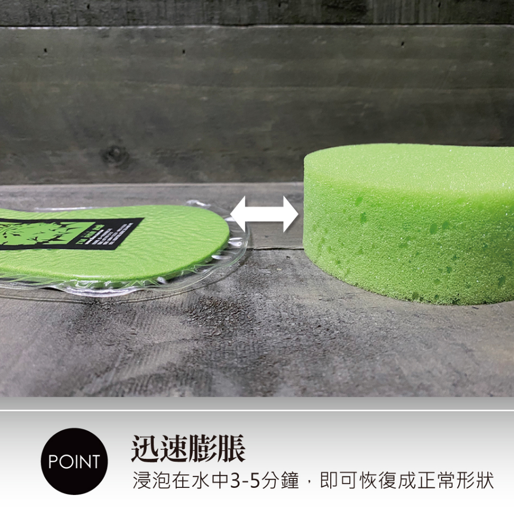 •產品為真空包裝,首次使用請先將海綿浸泡在水中3-5分鐘,待其恢復成正常形狀再開始使用