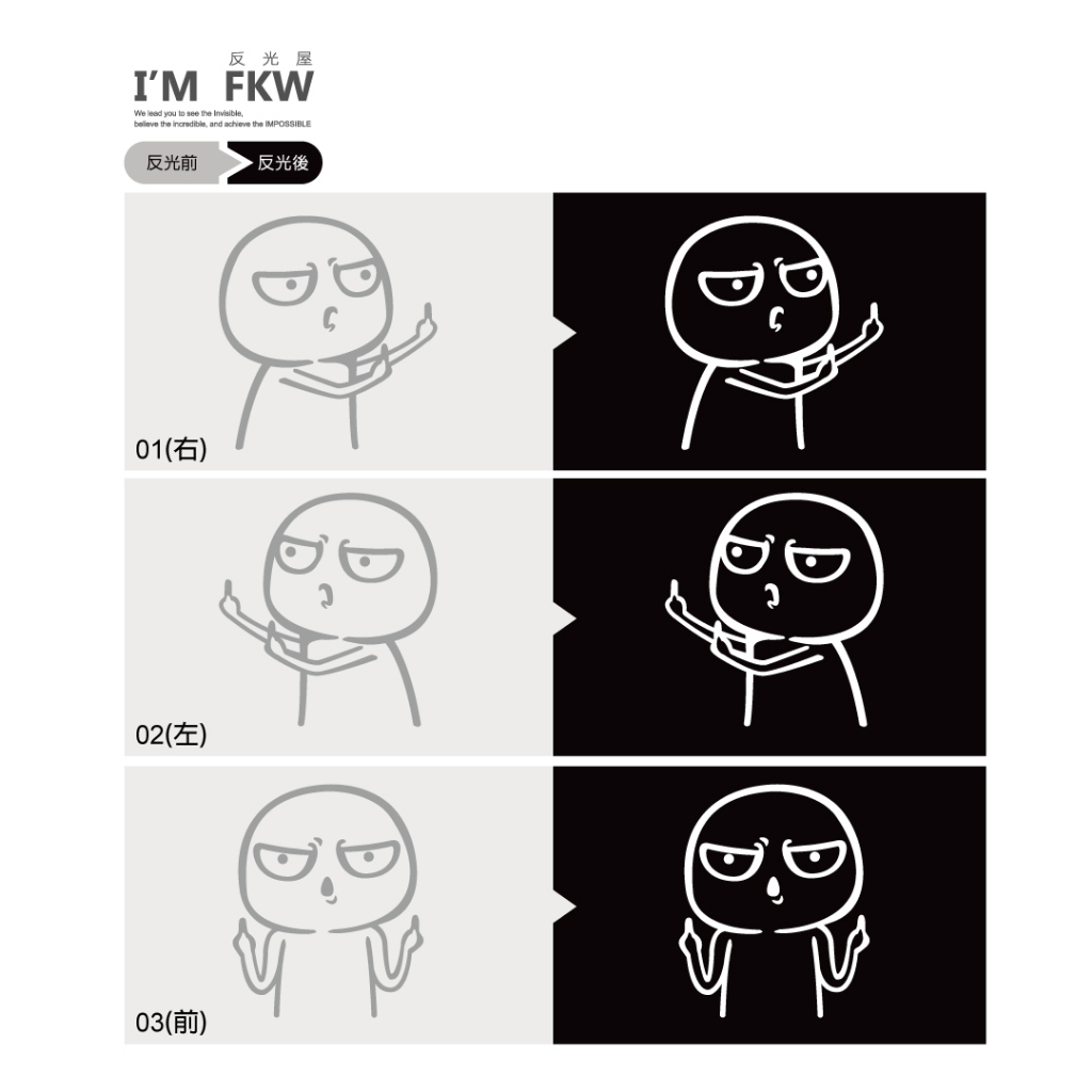 趣味惡搞,中二指數爆表的「白爛囝仔」造型反光車貼,一次釋出向左比中指、向前比中指、向右比中指