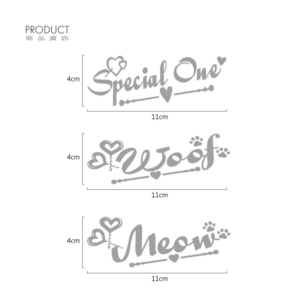 喵喵、汪汪,可愛的愛心標語反光車貼,貓奴狗奴必貼款