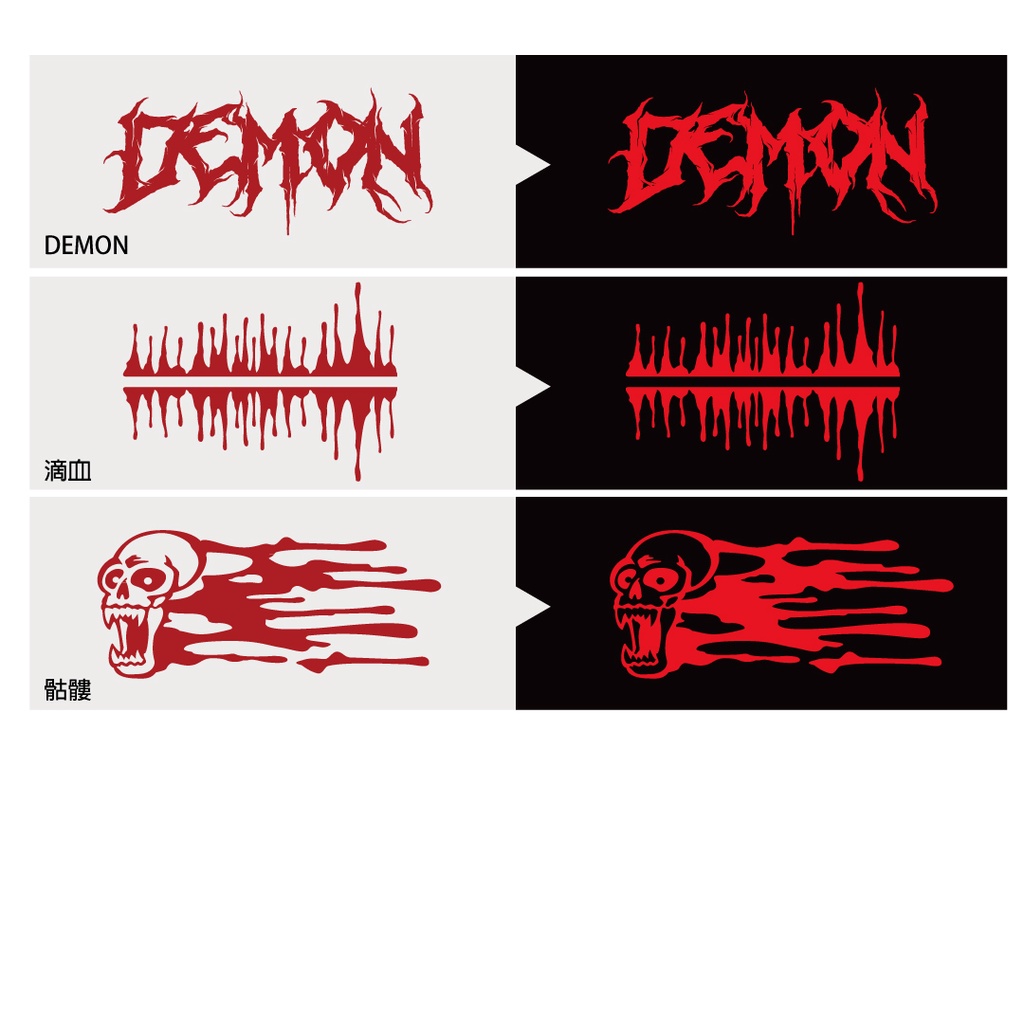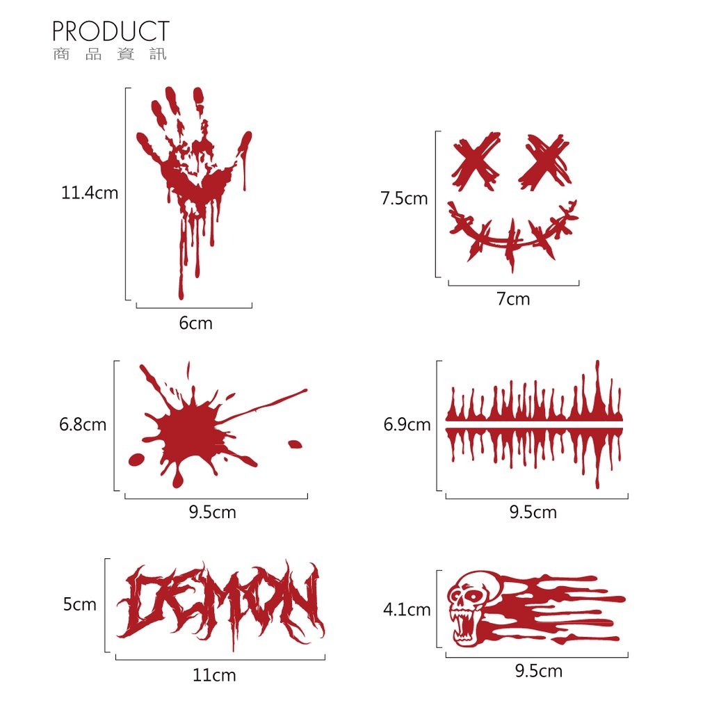 以血跡造型發想的全新反光車貼系列,血手掌、血漬、惡魔印記等多樣化圖款,打造車體撒旦風格外觀