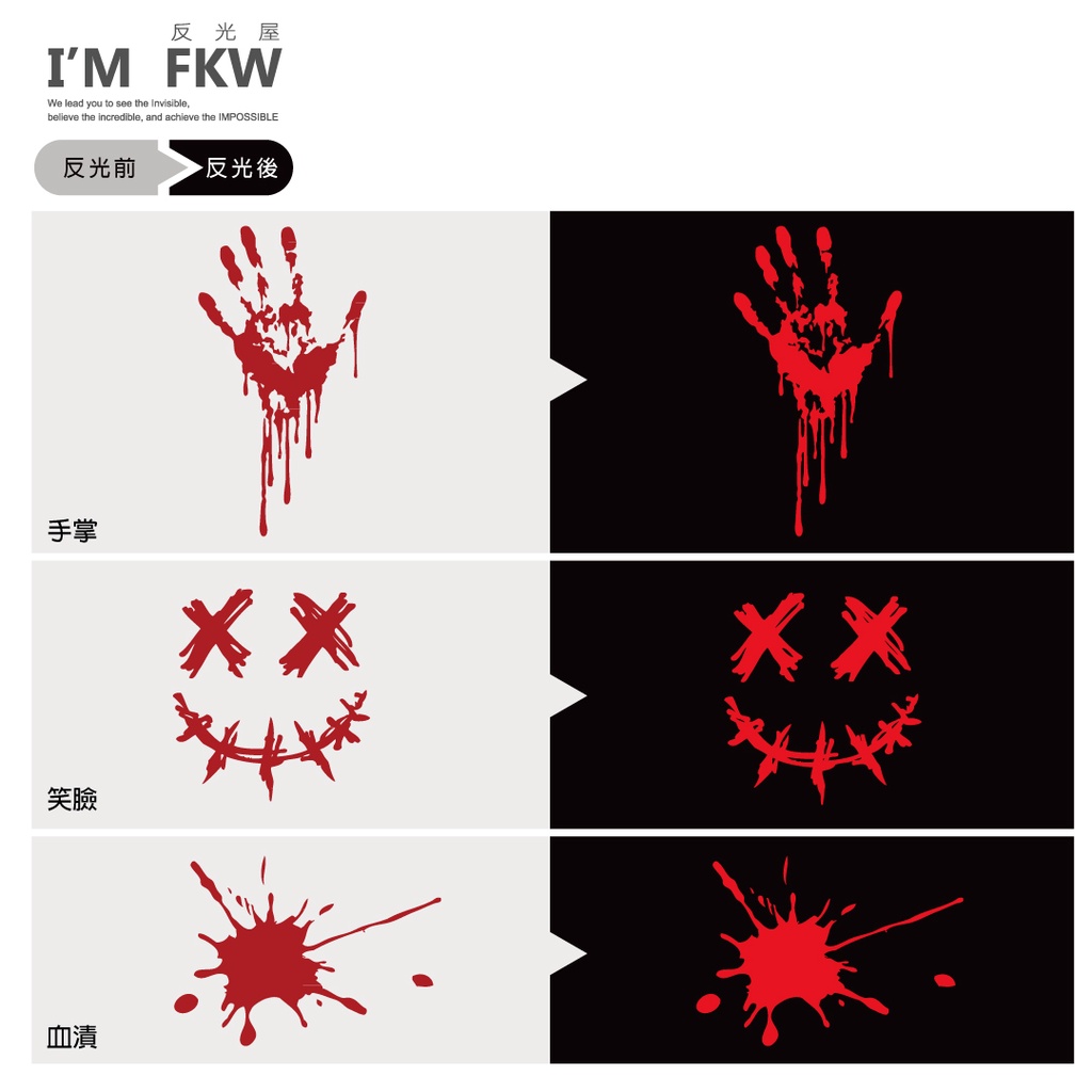 反光屋FKW 鮮血系列 反光貼紙 車貼 血手掌 血漬 骷髏 笑臉 惡魔 台灣製造 JETSR DRG 勁戰六代 通用