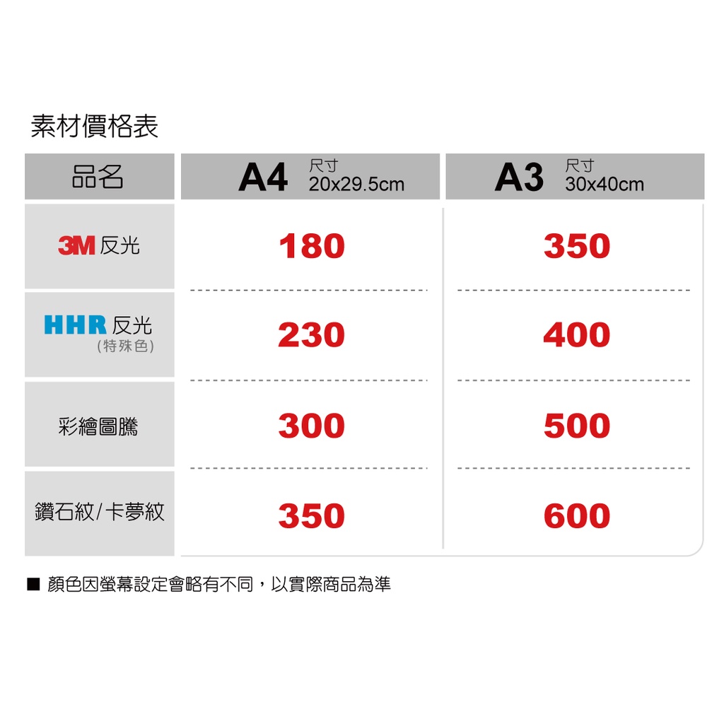 • 尺寸分為A4(20cm*29.5cm)NT$180;A3(30cm*40cm)NT$350