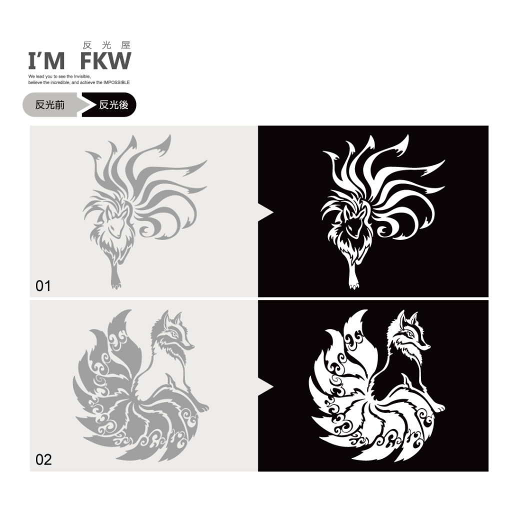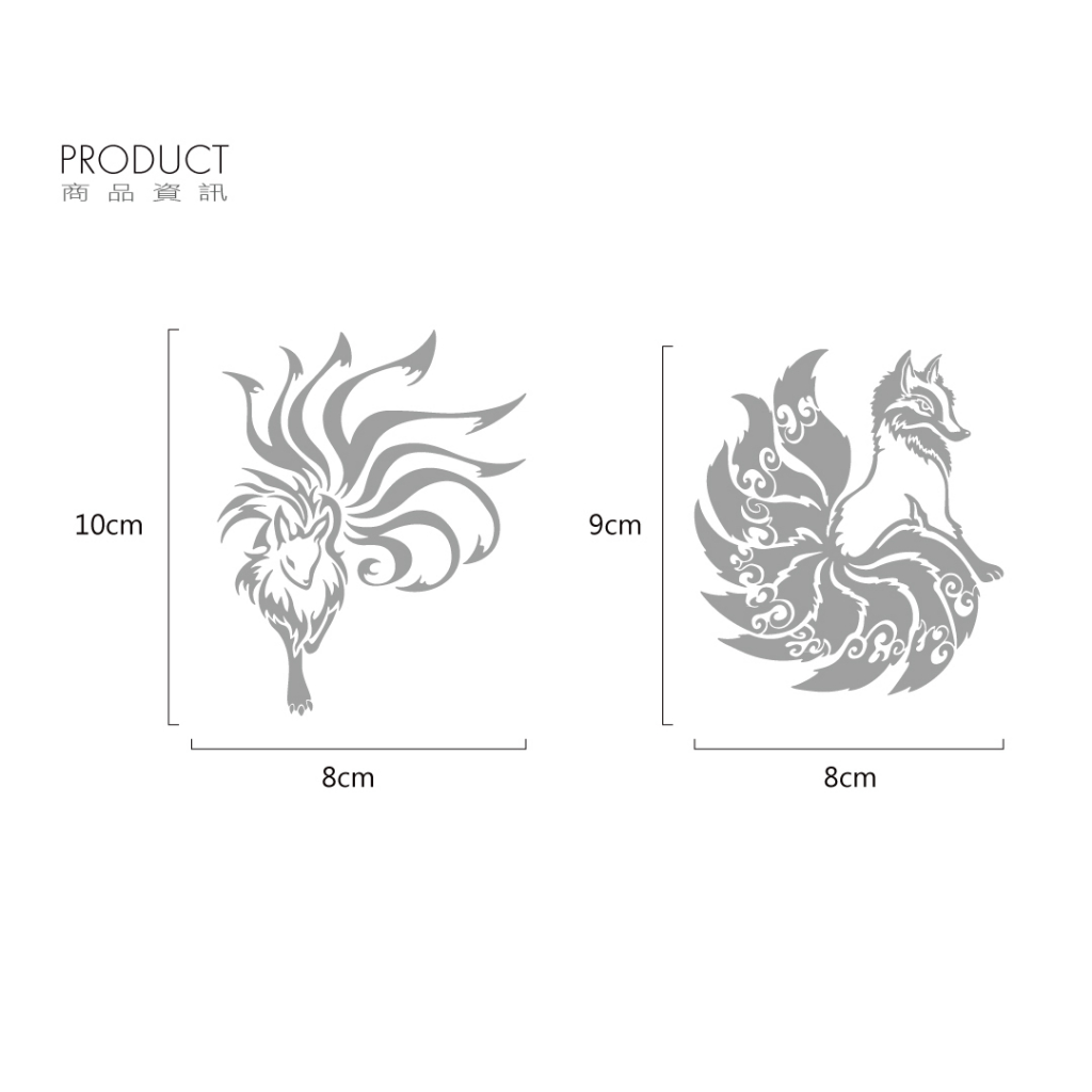 亦正亦邪的中國神獸-妖狐九尾反光車貼,採設計師手繪製作,無底簍空高質感印刷。