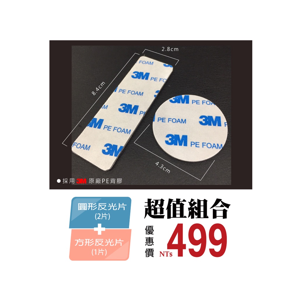 • 方形反光片8.4cm*2.8公分+圓形反光片直徑4.3公分