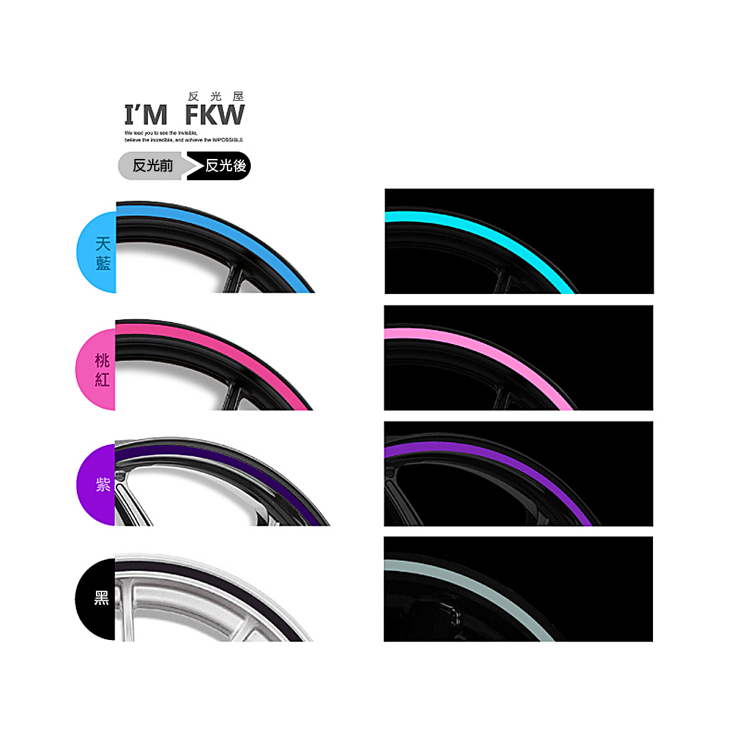 • 反光輪框貼紙1車份(4面),並附贈2條備用