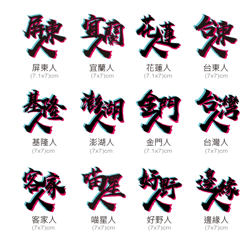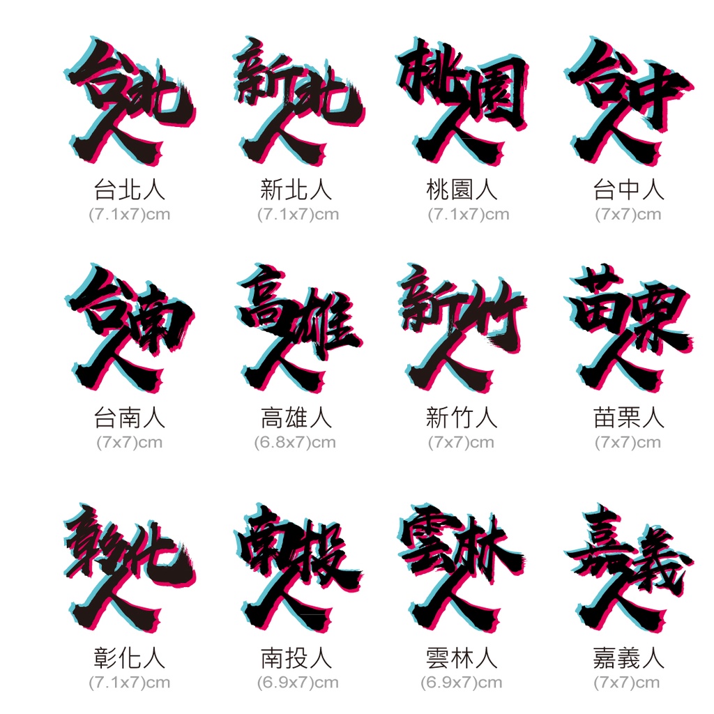 繼城市賽道系列後,最新力作"城市人"全新上市。融入紅藍3D視覺效果,包含台北人、新北人、桃園人、中壢人、台中人、台南人、高雄人、新北人、苗栗人、彰化人、南投人、雲林人、嘉義人、屏東人、宜蘭人、花蓮人、台東人、基隆人、澎湖人、金門人、台灣人、客家人、喵星人、汪星人、追夢人、擊敗人、好野人、邊緣人、一個人、不是人。