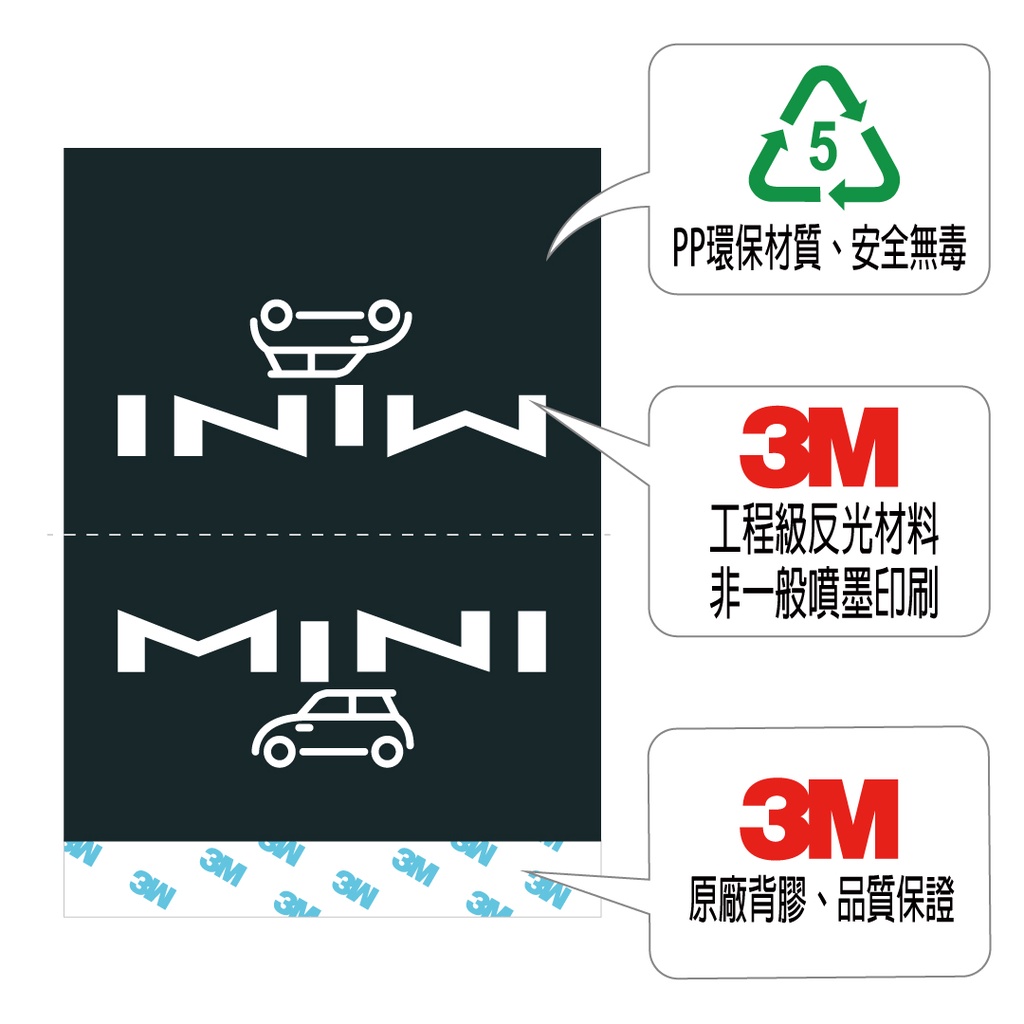 反光水洗標,適用於後車廂、車門等接縫處,如同玩具或衣服的水洗標,營造車子是部大玩具的視覺效果~當然,車標上的圖案具有反光屋絕佳的反光效果。