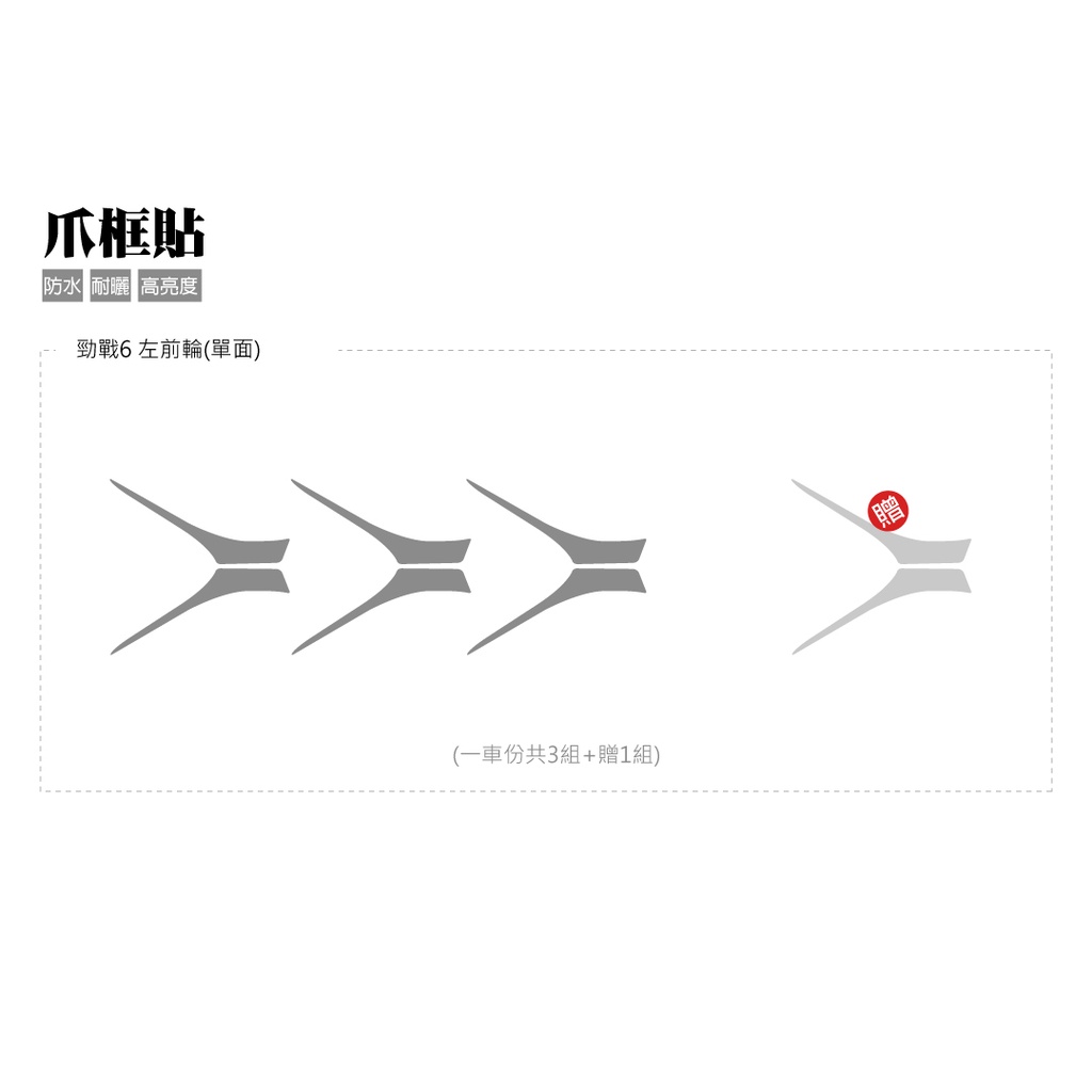 • 1部車購買1份即可,每份包含1面爪貼(前輪左側)